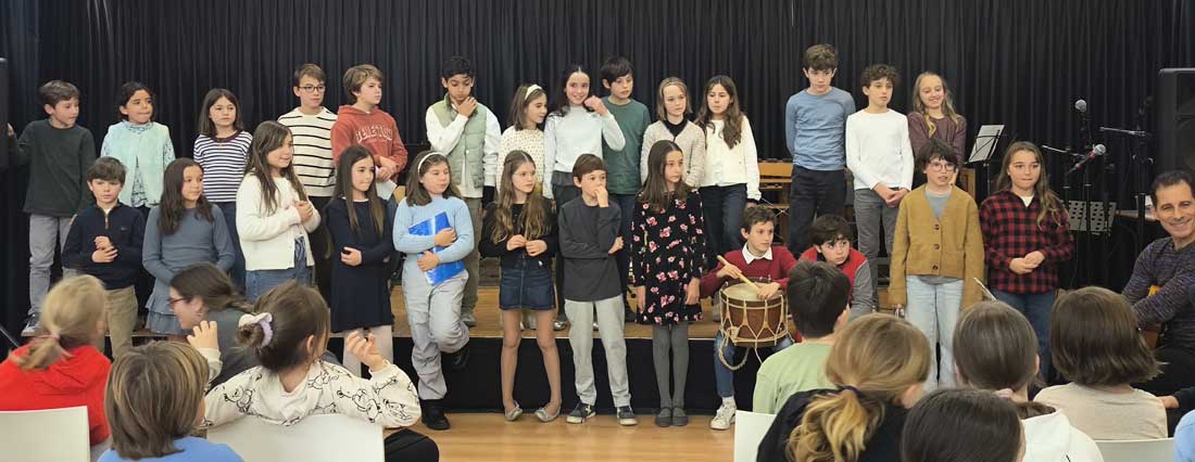 Los alumnos de Infantil fueron recibidos por un pequeño grupo de música instrumental al estilo clásico, que interpretó una serie de canciones populares infantiles como «Al pasar la barca», «Tengo una muñeca», «Quisiera ser tan alta», «La Tarara»…